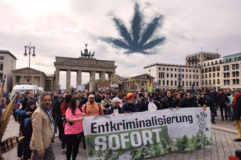 In Berlin fanden am Mittwoch gleich zwei Veranstaltungen parallel statt, von denen zumindest eine trotz des Aprilwetters gut besucht war. Um 13 Uhr startete die Demo mit dem Motto “Entkriminalisierung sofort” am Pariser Platz vor dem Brandenburger Tor mit, anstatt wie angemeldet 500 Teilnehmern, mit 1400. Unter ihnen waren viele wichtige und bekannte Gesichter, wie zum Beispiel Jugendrichter Müller und der Polizeipräsident Hubert Wimber, welche beide auch auf der Bühne zu hören waren. Auch die Politik meldete sich zu Wort, so gab es Redebeiträge von Ates Gürpinar, dem drogenpolitischen Sprecher der Linken, Sonja Eichwede, rechtspolitischer Sprecherin der SPD und Maria Krause, der politischen Referentin des DHV.